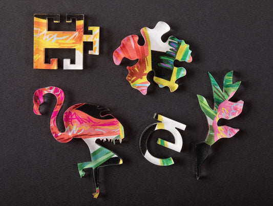 our custom, easy-to-use acrylic frames come in vibrant colors and will bring your ēklektik pieces puzzle to life, no glue needed!